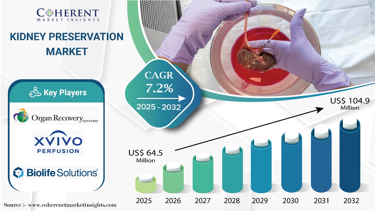 Kidney Preservation Market to Hit $104.9 Million by 2032, at a CAGR of 7.2%, says Coherent Market Insights